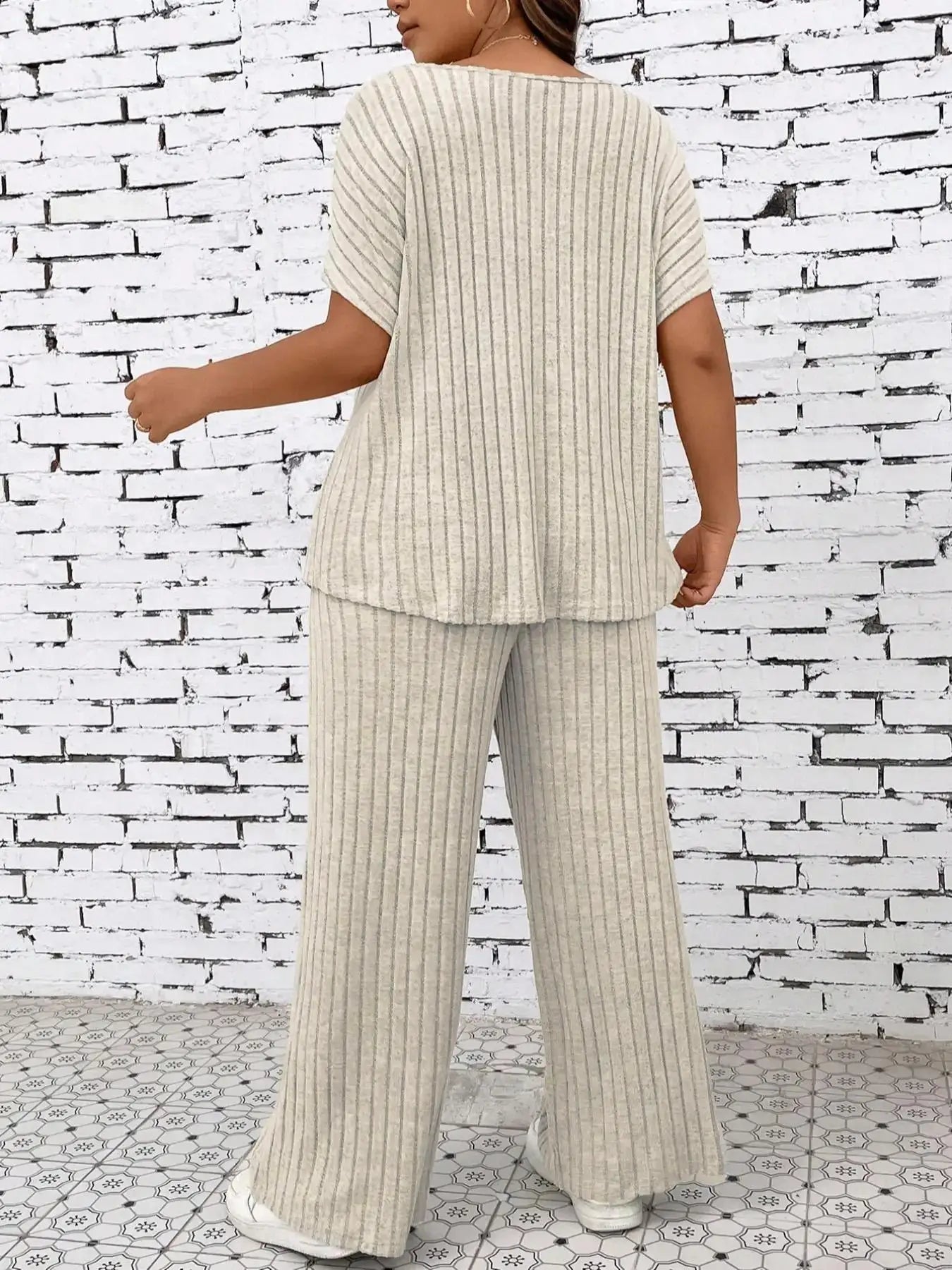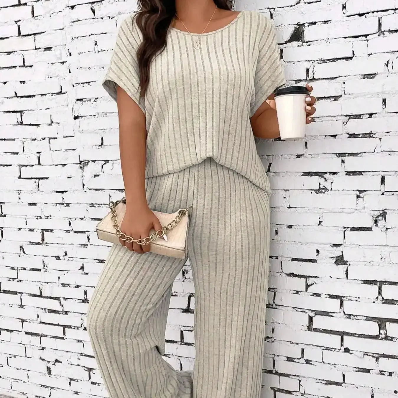 Casual Short Sleeve T-shirt & Straight Leg Tro